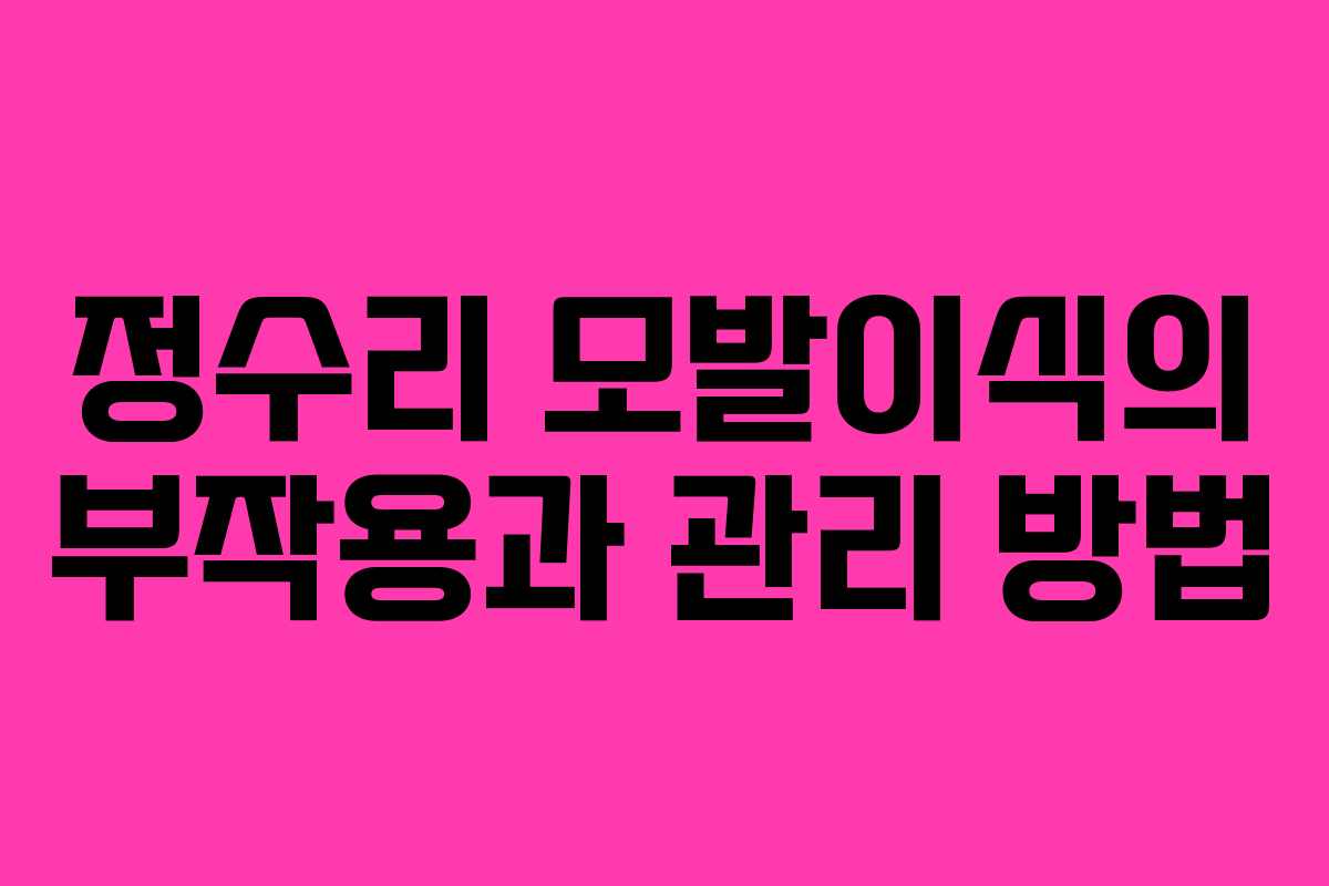정수리 모발이식은 탈모로 고민하는 많은 사람들에게 효과적인 해결책으로 알려져 있습니다. 이식할 모발은 남성호르몬의 영향을 받지 않는 뒷머리와 옆머리에서 채취하여 정수리에 이식하는 방식으로 진행됩니다. 이식 후에는 호르몬의 영향을 받지 않아 탈모 관리가 용이해지지만, 몇 가지 부작용이 발생할 수 있습니다.
