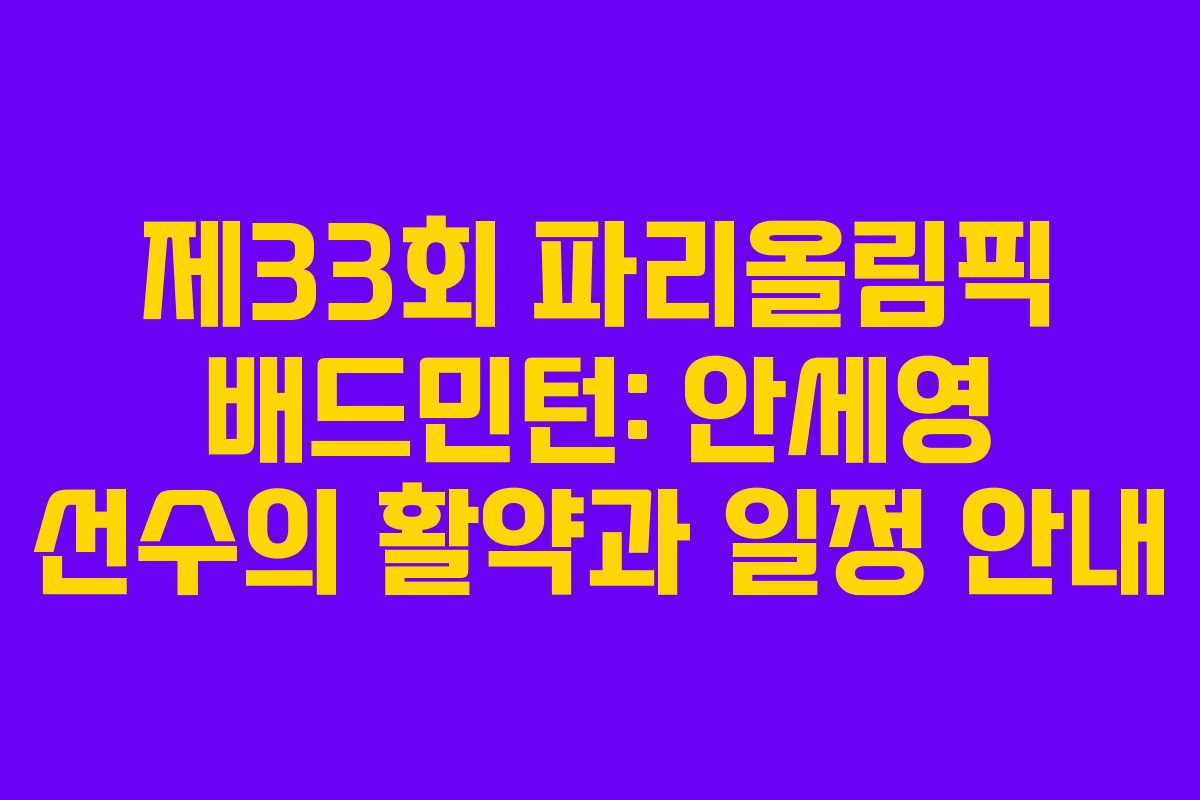 2024년 제33회 파리올림픽에서 배드민턴 종목은 많은 관심을 받고 있습니다. 특히, 여자 단식 세계랭킹 1위인 안세영 선수의 활약이 기대되는데요. 이번 포스팅에서는 배드민턴의 경기 일정, 선수 명단, 경기 결과 및 무료 중계 정보에 대해 자세히 알아보겠습니다.