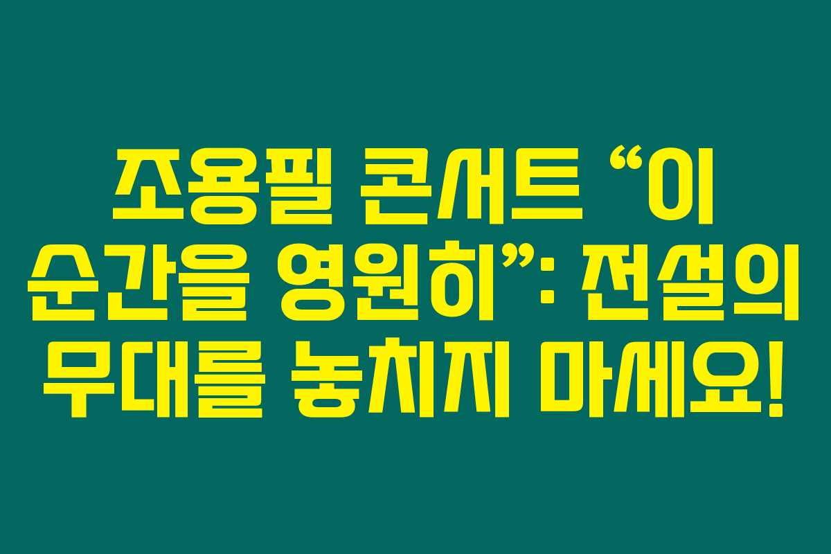 키워드: 조용필 콘서트, 예매 일정, 무료 공연, KBS 대기획, 히트곡 라이브
