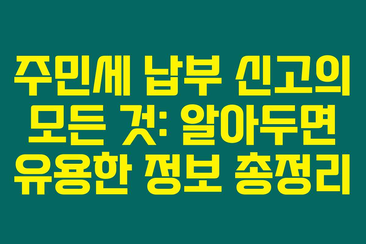 주민세 납부 신고 방법에 대한 정보를 찾고 계신다면 여기서 필요한 모든 정보를 얻을 수 있어요. 주민세 납부 신고를 혼자서 어떻게 해야 할지 막막하다면 아래를 읽어보시면 많은 도움이 될 거예요. 2024년에는 주민세 납부 신고를 정확하게 하고, 납부 기한도 놓치지 않도록 주의해야겠죠.