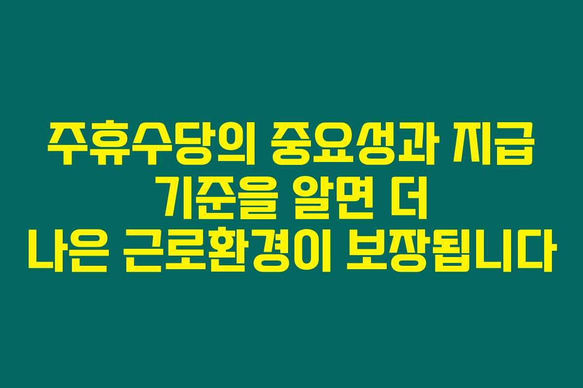 주휴수당은 일하는 근로자에게 매우 중요한 부분으로, 아르바이트를 하시는 분들께 특히 유용한 정보를 제공하고자 하며, 제가 직접 경험해본 내용을 바탕으로 상세히 안내해 드리겠습니다. 주휴수당에 대한 이해를 돕기 위해, 지급 조건과 계산하는 방법을 자세히 살펴보겠습니다. 아래를 읽어보시면 주휴수당의 기준과 계산 방식에 대해 충분히 이해하실 수 있을 것입니다.