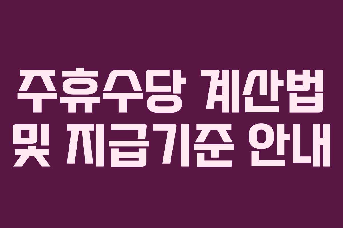 주휴수당은 근로자가 알아두어야 할 중요한 권리입니다. 지급 기준과 계산법을 이해하고, 자신이 받을 수 있는 권리를 챙기시기 바랍니다.