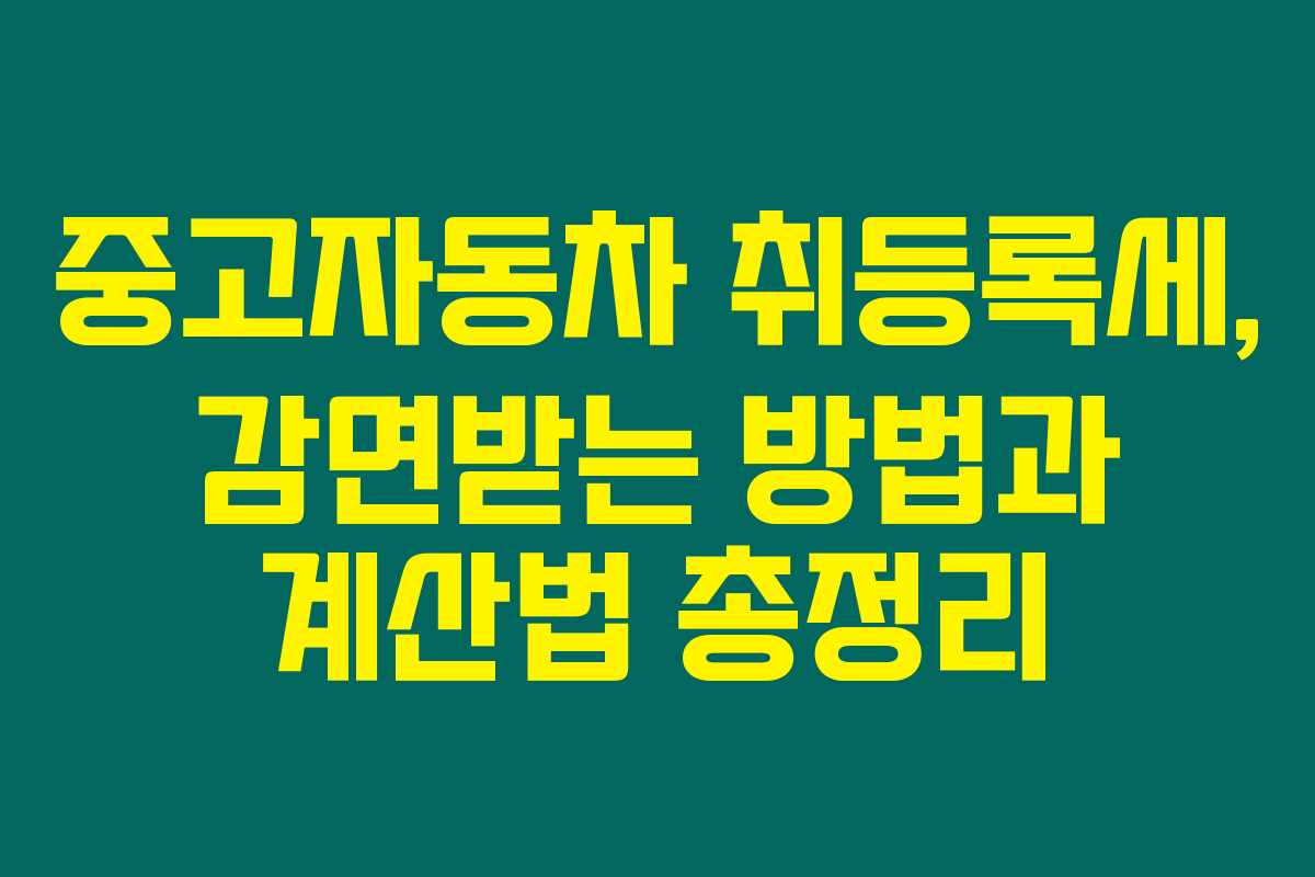 제가 직접 알아본 바로는 중고자동차 구매 시 발생하는 취등록세는 생각보다 복잡했어요. 실제로 중고차를 구입할 때는 신차보다 낮은 가격으로 취등록세를 내게 되지만, 그럼에도 불구하고 어떻게 계산되는지는 잘 모르는 분들이 많더라고요. 아래를 읽어보시면 중고자동차의 취등록세 감면 방법과 계산법에 대해 쉽게 이해할 수 있을 거예요.