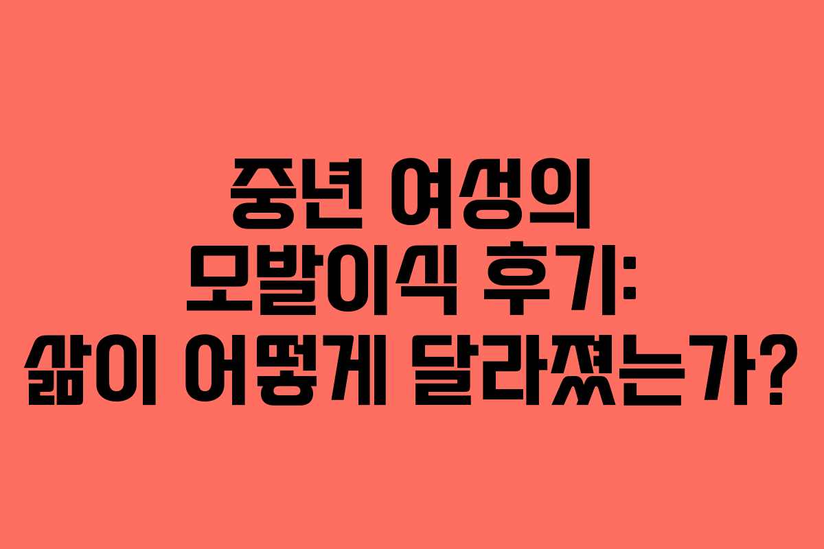 이처럼 모발이식은 중년 여성들에게 큰 변화를 가져올 수 있는 방법입니다. 체계적인 관리와 충분한 사후 케어를 통해 더욱 만족스러운 결과를 얻을 수 있습니다.