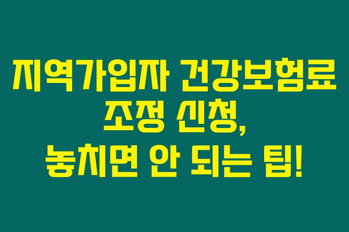지역가입자 건강보험료 조정은 꼭 필요한 절차예요. 소득이나 재산 상황에 따라 빠르게 신청하고, 부담을 줄이는 것이 중요합니다. 여러분도 꼭 필요할 때, 본인의 상황을 파악하고 신청해보세요!