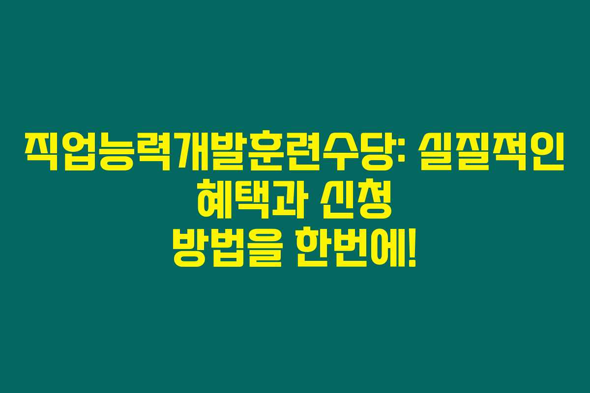 디스크립션: 직업능력개발훈련수당에 대해 제가 직접 확인해본 결과, 이 수당은 훈련생들에게 경제적 지원을 제공하여 훈련에 집중할 수 있도록 도와주는 제도입니다. 이 글에서는 혜택과 신청 방법을 자세히 안내드릴게요.