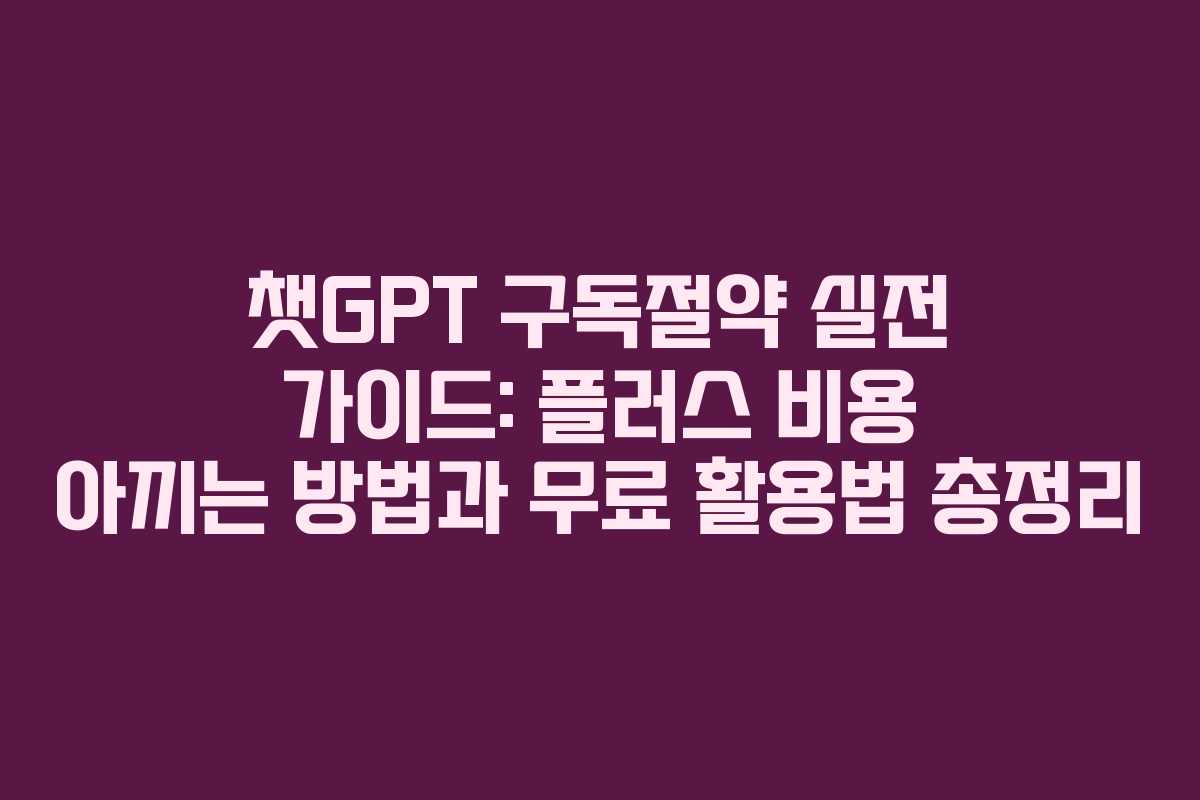 챗GPT 구독절약 실전 가이드: 플러스 비용 아끼는 방법과 무료 활용법 총정리