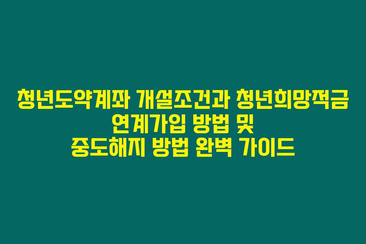 청년도약계좌와 청년희망적금은 청년들에게 경제적 자립의 기회를 제공하는 중요한 금융 상품이에요. 이 글을 통해 이러한 두 계좌의 개설 조건, 연계가입 방법 그리고 중도해지를 어떻게 하는지에 대해 깊이 있게 알아볼게요. 아래를 읽어보시면 청년들이 꼭 알아야 할 포인트들을 한눈에 확인할 수 있습니다.