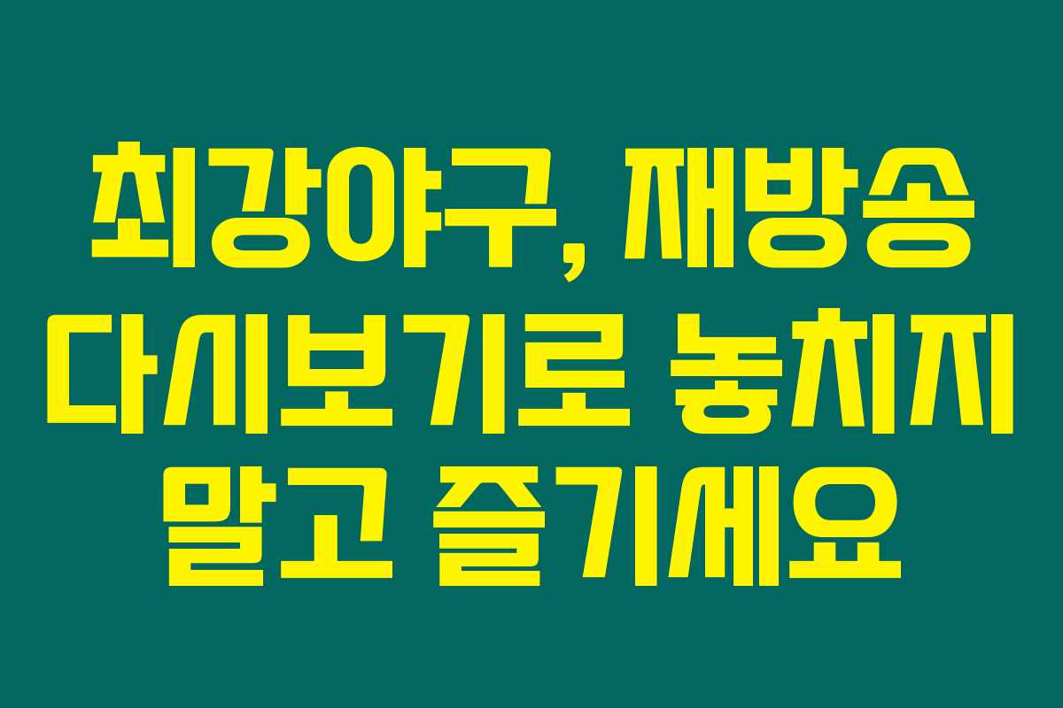 최강야구 재방송 다시보기를 통해 그동안의 경기를 놓친 아쉬움을 털어버릴 수 있습니다. 빠르고 간편하게 원하는 에피소드를 다시 시청하기 좋은 방법을 아래에서 확인해 보세요.