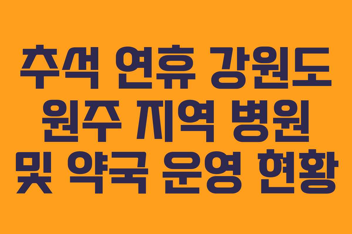 추석 연휴를 맞아 강원도 원주 지역의 병원과 약국 운영 현황을 알아보겠습니다. 연휴 기간 중 의료 서비스 이용이 필요한 경우를 대비하여 유용한 정보를 제공하니 참고하시기 바랍니다.