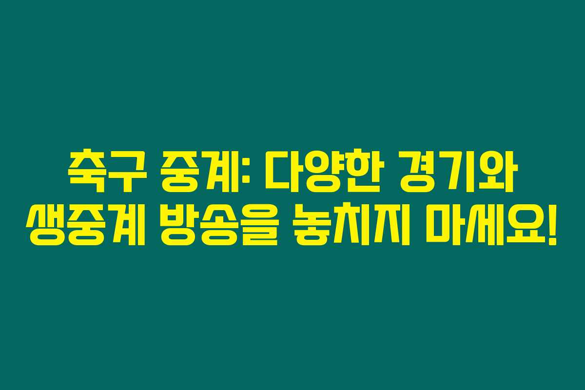 축구 중계에 관심이 많으신가요? 그렇다면 아래를 읽어보시면 다양한 축구 경기의 생중계 방송 정보를 꼭 체크해야 하는 이유를 알게 될 거예요. 대한민국 축구 국가대표팀의 최신 소식부터 흥미진진한 경기 일정까지 모두 준비했답니다.