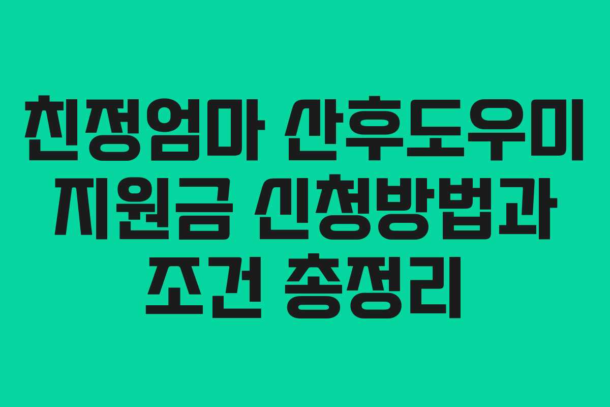 출산 후 산모의 회복과 신생아 돌봄을 위해 많은 부모들이 산후도우미의 도움을 필요로 합니다. 특히 친정엄마가 산후도우미로 활동할 수 있는 기회가 생겼다는 사실은 큰 반가움이 아닐 수 없습니다. 하지만 지원금을 받기 위해서는 몇 가지 조건과 절차가 필요합니다.