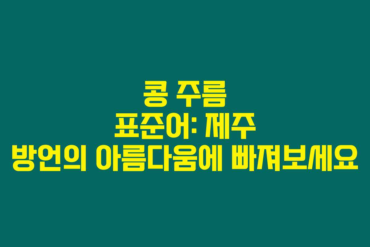 콩 주름 표준어에 관심이 많은가요? 제주 방언은 그 자체로 매력적인 언어 문화입니다. 만약 제주방언에 대해 궁금해하거나 배우고 싶다면 아래 내용을 꼭 확인해보세요. 제주도 사투리의 매력을 알고 싶다면 콩 주름 표준어와 함께 그 여정을 시작해보는 것도 좋답니다.