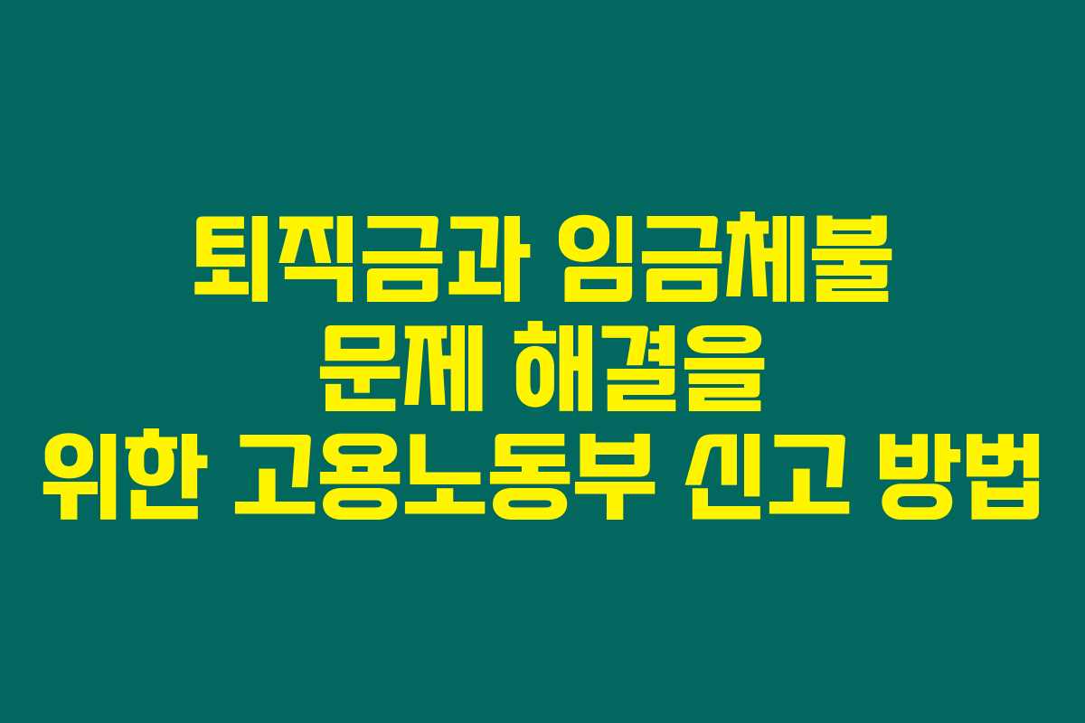 퇴직금과 임금체불로 어려움을 겪고 있다면 이 정보를 주목하세요. 퇴직금이나 임금을 제대로 지급받지 못하는 것은 많은 근로자들에게 큰 고통이지요. 만약 이런 상황이라면 빠르게 고용노동부에 신고하는 것이 최선의 방법입니다. 아래를 읽어보시면 고용노동부 신고 방법과 준비 사항에 대해 자세히 알아보실 수 있습니다.