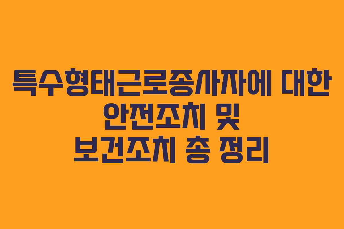 특수형태근로종사자를 위한 안전조치는 다양한 분야에서 필수적입니다. 사업주는 이들을 보호하기 위해 다음과 같은 조치를 취해야 합니다.