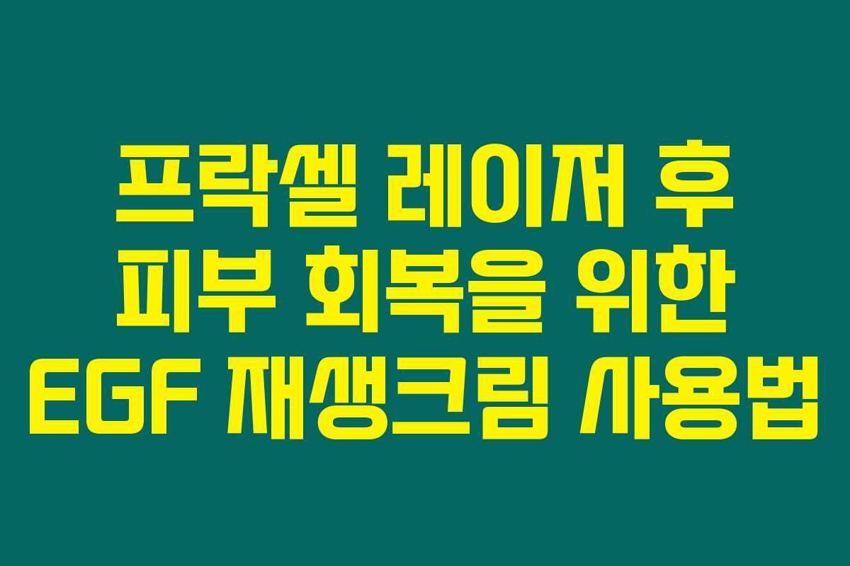 프락셀 레이저 시술 후 피부 재생 관리에 대해 고민하고 계신가요? 프락셀 시술이 피부를 손상시키는 만큼, 적절한 관리와 재생이 필요합니다. 많은 사람들이 EGF 재생크림을 사용하고 있습니다만 그 이유와 방법을 알고 계신가요? 아래를 읽어보시면 프락셀 레이저 시술 후 EGF 재생크림의 중요성과 사용법에 대해 자세히 알아보실 수 있어요.
