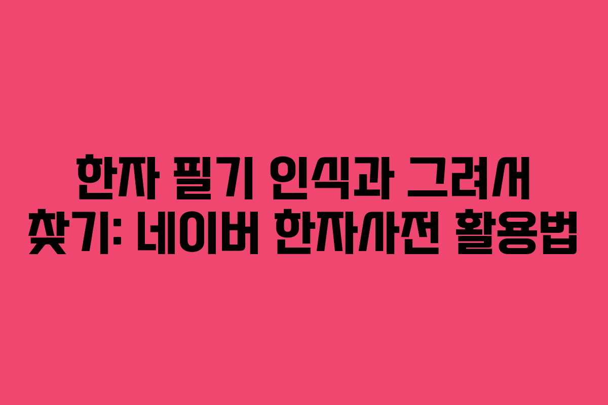 한자를 잘 모르는 경우, 그를 찾는 것은 쉽지 않습니다. 특히 스마트폰을 통해 한자를 검색할 수 있는 방법이 있다면 편리함이 배가될 것입니다. 이번 포스팅에서는 네이버 한자사전을 활용해 한자를 필기 인식으로 쉽게 찾는 방법에 대해 알아보겠습니다.
