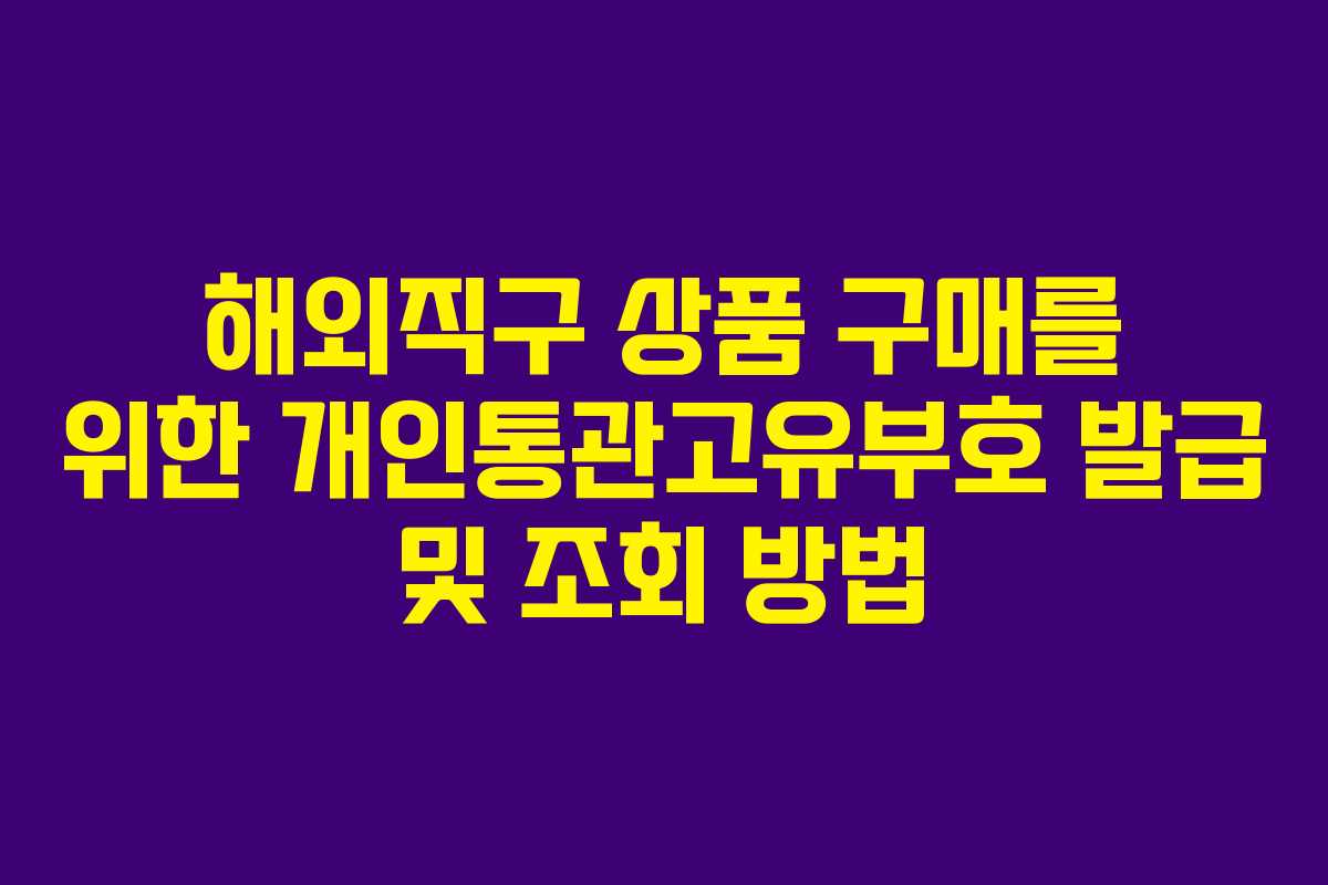 해외직구를 통해 상품을 구매하려면 개인통관고유부호가 필요합니다. 이 번호는 무료로 발급받을 수 있으며, 간단한 절차를 통해 진행할 수 있습니다. 아래 방법을 따라 개인통관고유부호를 발급받고 조회해 보세요.