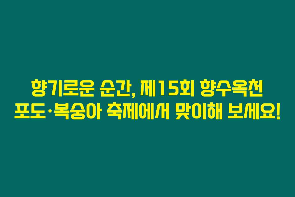 축제는 지역 농산물을 사랑하는 모든 이들에게 색다른 경험을 제공합니다. 향수옥천 포도·복숭아 축제는 단순한 행사 이상의 특별한 만남이 될 거예요. 신선한 과일과 즐거운 활동으로 가득한 이 축제에 꼭 방문해보세요!