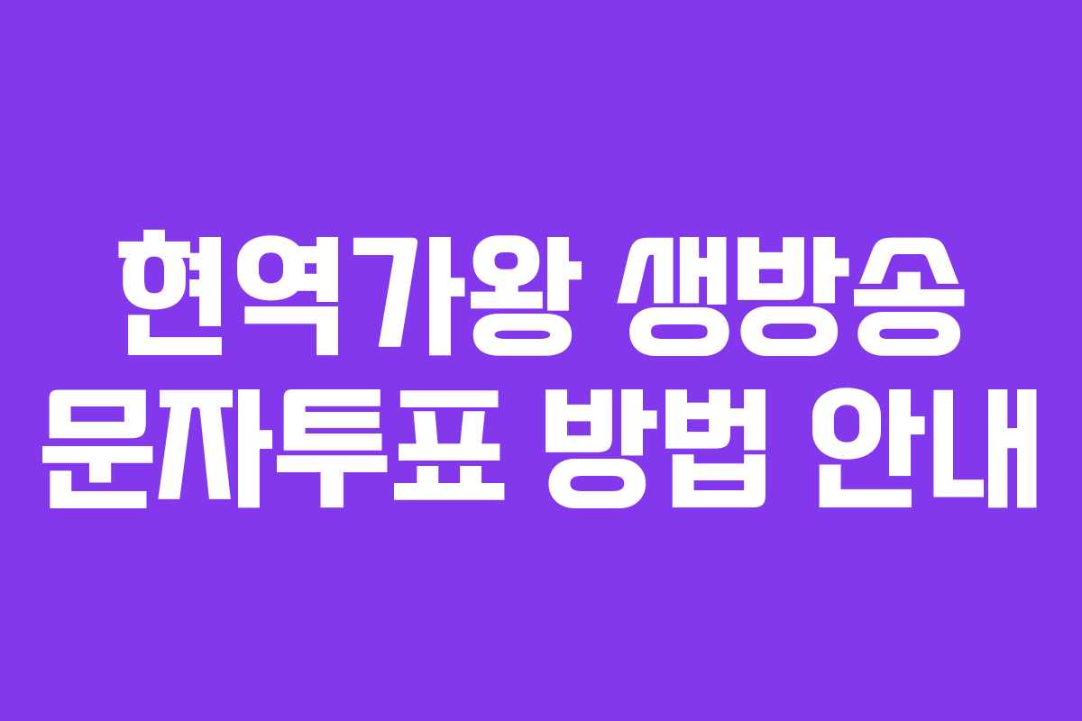현역가왕 생방송에서 실시간 문자투표를 통해 응원하는 출연자에게 투표할 수 있는 방법을 소개합니다. 정확한 방법을 따라 무효처리를 피하고, 응원하는 출연자에게 힘을 실어주세요.