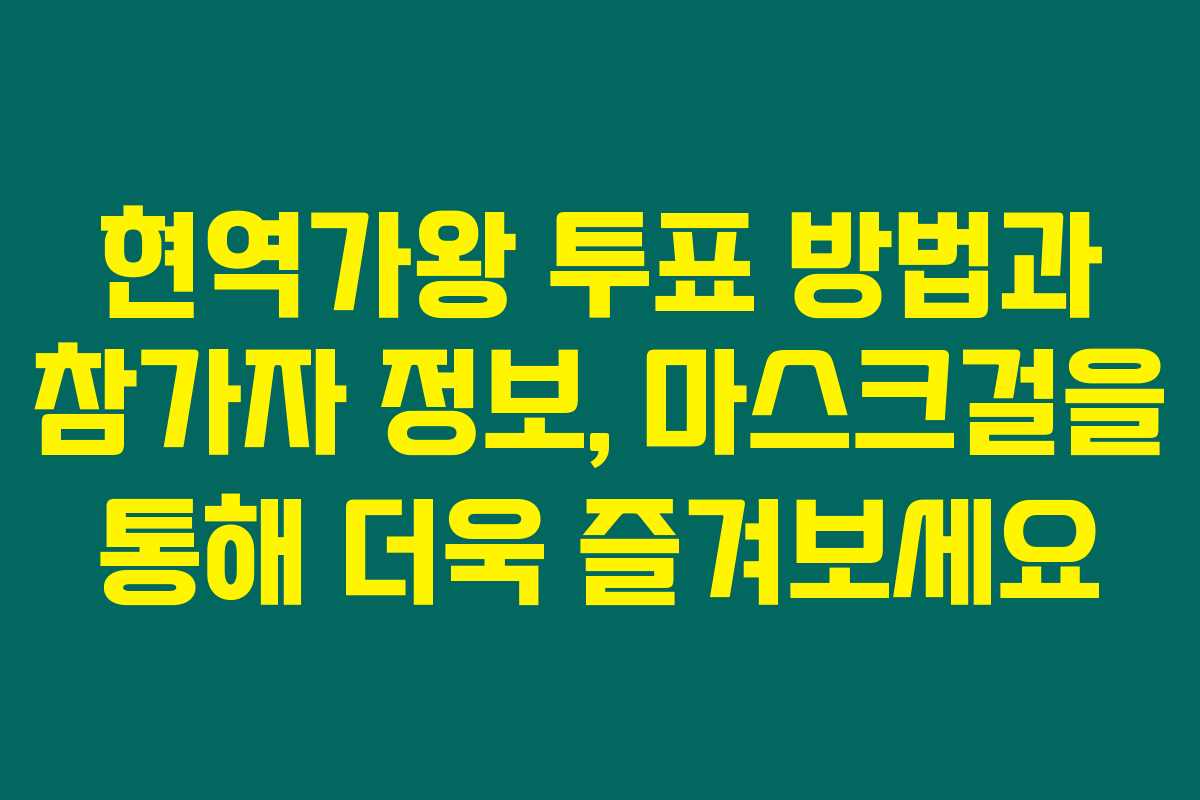 현역가왕은 방송 3회 만에 모든 방송 프로그램 중 최고 시청률인 10%를 기록하며 큰 화제를 모으고 있어요. 이번 글에서는 현역가왕 투표 방법과 유일무이한 참가자인 마스크걸을 포함한 다양한 참가자들에 대한 정보를 알아보려 해요. 그럼 함께 살펴볼까요?