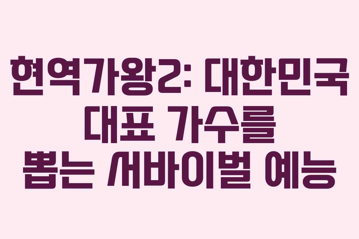 현역가왕2는 대한민국의 현역 가수들이 경연을 통해 최고의 가수를 결정하는 서바이벌 예능 프로그램입니다.