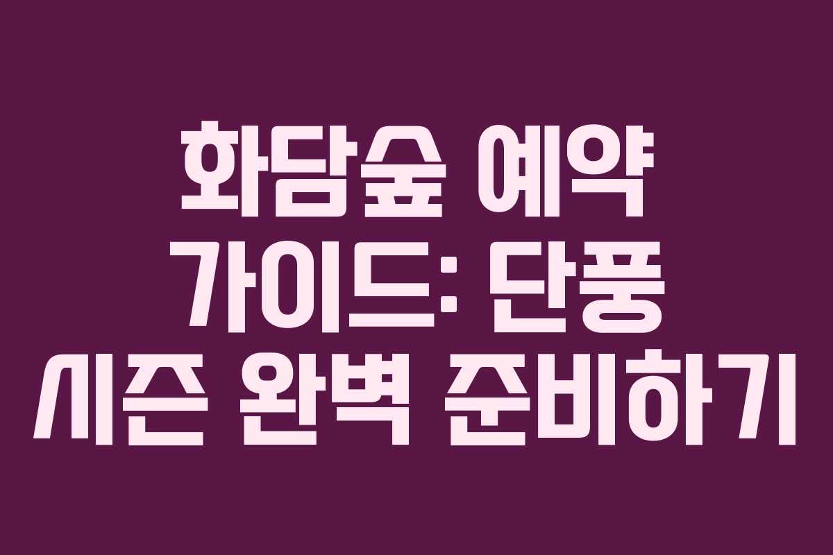 단풍 시즌에 화담숲을 방문하려면 사전 준비가 중요합니다. 최상의 가을 풍경을 경험하기 위해 지금부터 계획하세요!