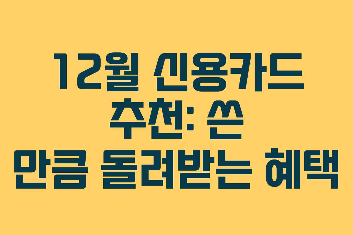 이번 12월에는 추천드린 신용카드를 통해 경제적인 혜택을 누리시기 바랍니다. 슬기로운 소비생활을 이어가세요!
