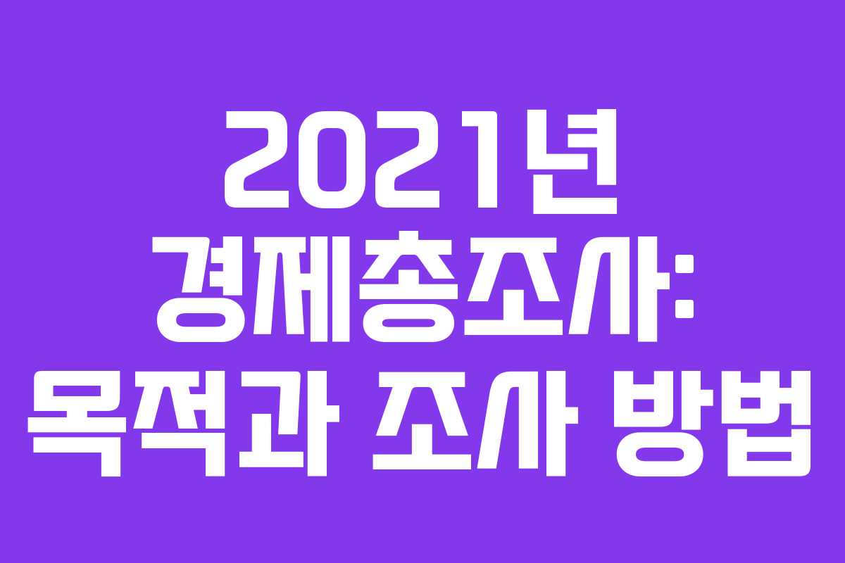 경제총조사는 인구주택총조사, 농림어업총조사와 함께 통계청에서 시행하는 3대 총조사 중 하나로, 5년마다 실시되어 우리나라의 전체 경제활동을 파악하는 것을 목표로 하고 있습니다. 이를 통해 코로나19의 경제적 영향 및 새로운 산업 구조 변화에 대한 데이터를 수집할 수 있습니다.