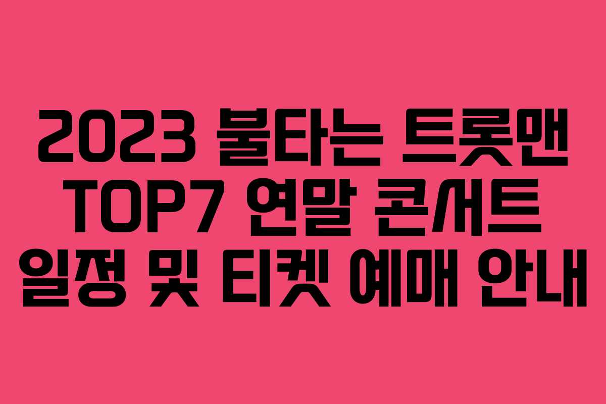 2023년은 ‘미스터 트롯 2’와 ‘불타는 트롯맨’을 통해 남자 트롯 가수들이 활발히 활동하는 시기로, TOP7 가수들이 연말 콘서트를 개최합니다. 이번 글에서는 각 지역에서 열리는 콘서트 일정과 티켓 예매 정보를 정리해보겠습니다.