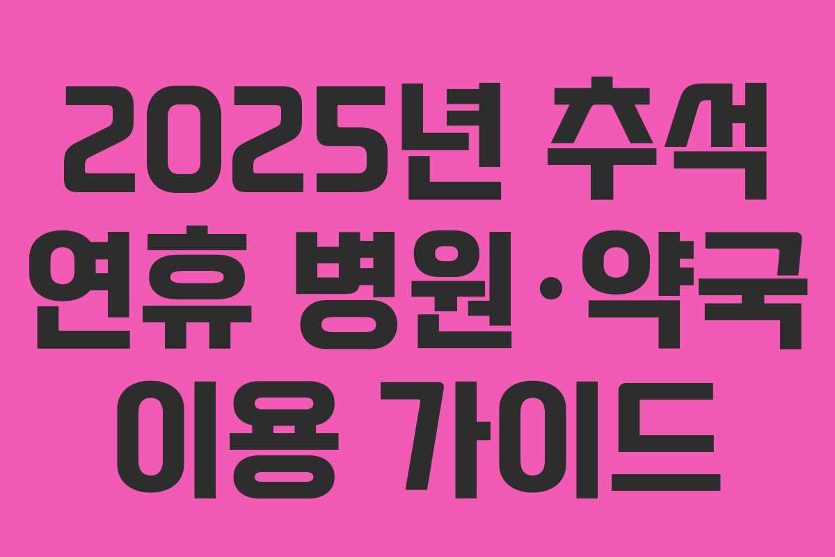 이 가이드를 통해 2025년 추석 연휴 동안의 병원 및 약국 이용에 대한 불안감을 덜고, 필요한 경우 신속하게 대처하시기 바랍니다.