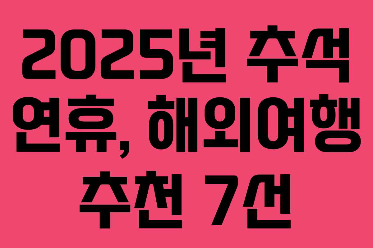 2025년 추석 연휴는 긴 휴가로 여행하기에 최적의 시기입니다. 바쁜 일상에서 벗어나 가족, 친구, 혹은 혼자만의 시간을 보내기에 알맞은 해외여행지를 찾고 계신가요? 이번 글에서는 힐링과 모험을 동시에 즐길 수 있는 7곳의 여행지를 소개합니다.