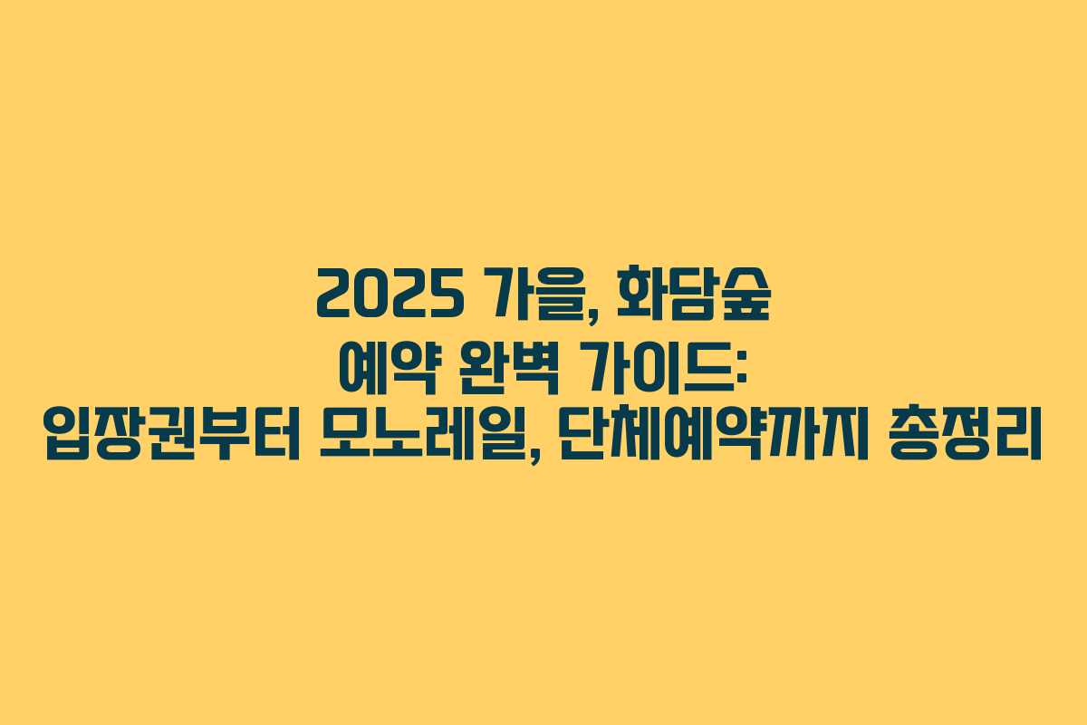 2025 가을, 화담숲 예약 완벽 가이드: 입장권부터 모노레일, 단체예약까지 총정리