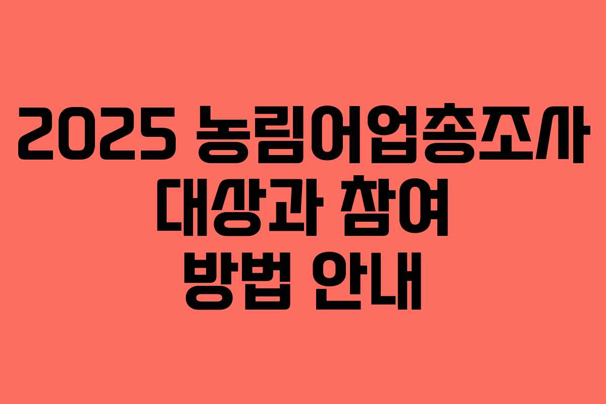 2025년 농림어업총조사가 12월부터 전국적으로 실시됩니다. 이 조사는 농업, 임업, 어업 종사자에게 필요한 국가 통계로, 참여 대상과 조사 일정, 방법을 자세히 안내해 드립니다.