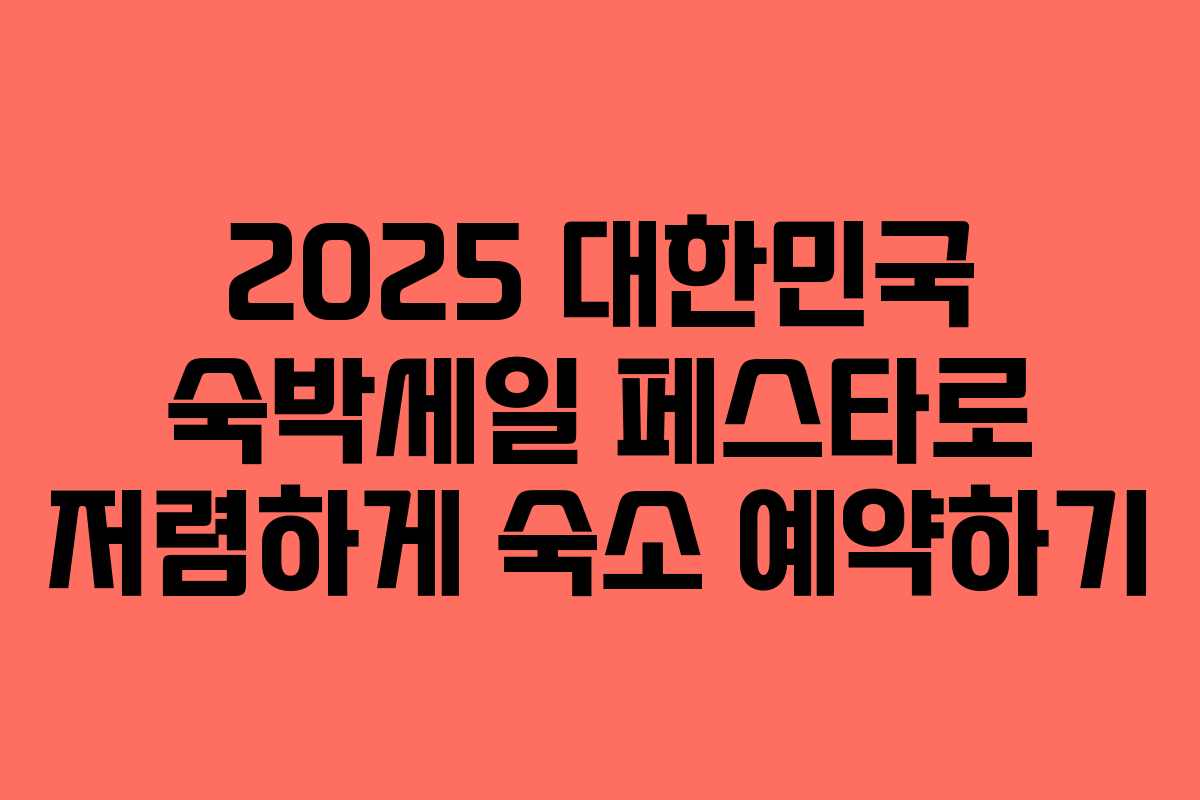 2025 대한민국 숙박세일 페스타로 저렴하게 숙소 예약하기