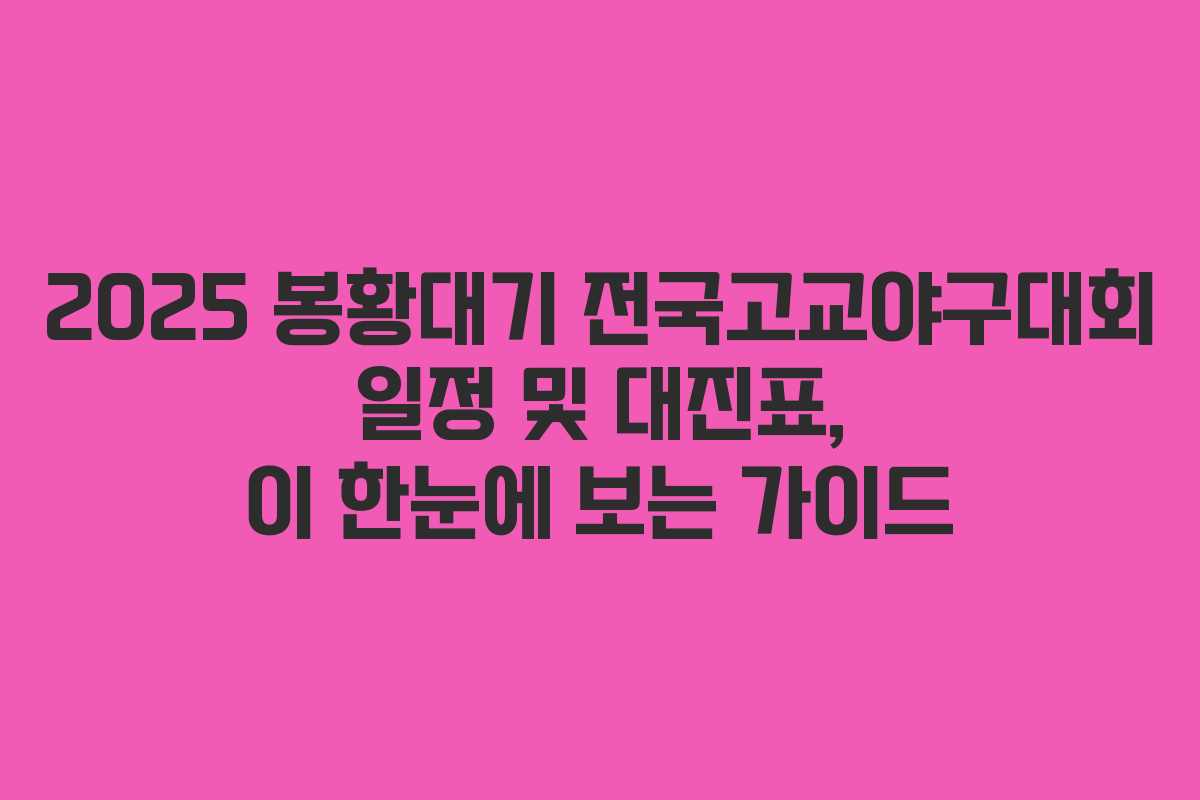 – ### 2025 봉황대기 대회 일정은 어떻게 확인하나요?