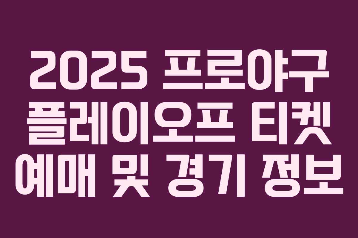 2025 KBO 프로야구 플레이오프의 티켓 예매 일정과 경기 정보에 대해 알아보겠습니다. 성공적인 티켓팅을 위해 필요한 모든 정보를 제공합니다.