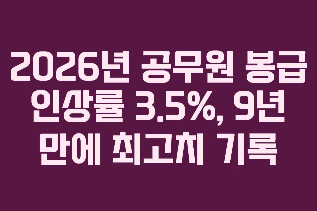 2026년 공무원 봉급 인상률이 3.5%로 확정되었으며, 이는 지난 9년 동안의 최고치입니다. 이번 인상은 공직사회의 여러 문제를 해결하기 위한 정부의 노력을 반영하고 있습니다.