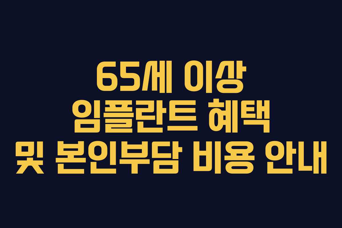 나이가 들면서 치아가 빠지거나 손상되는 문제는 많은 어르신들에게 큰 고통을 안겨줍니다. 이런 상황에서 임플란트나 틀니는 음식을 즐기는 데 도움을 줄 수 있는 중요한 방법입니다. 특히 65세 이상 어르신들을 위한 임플란트 혜택은 건강보험의 지원을 통해 더 많은 분들이 치료를 받을 수 있도록 돕고 있습니다. 이번 글에서는 65세 이상 임플란트 혜택의 조건과 본인부담 비용에 대해 자세히 알아보겠습니다.