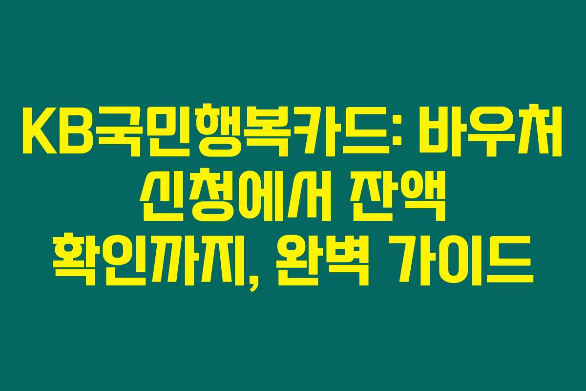 KB국민행복카드: 바우처 신청에서 잔액 확인까지, 완벽 가이드