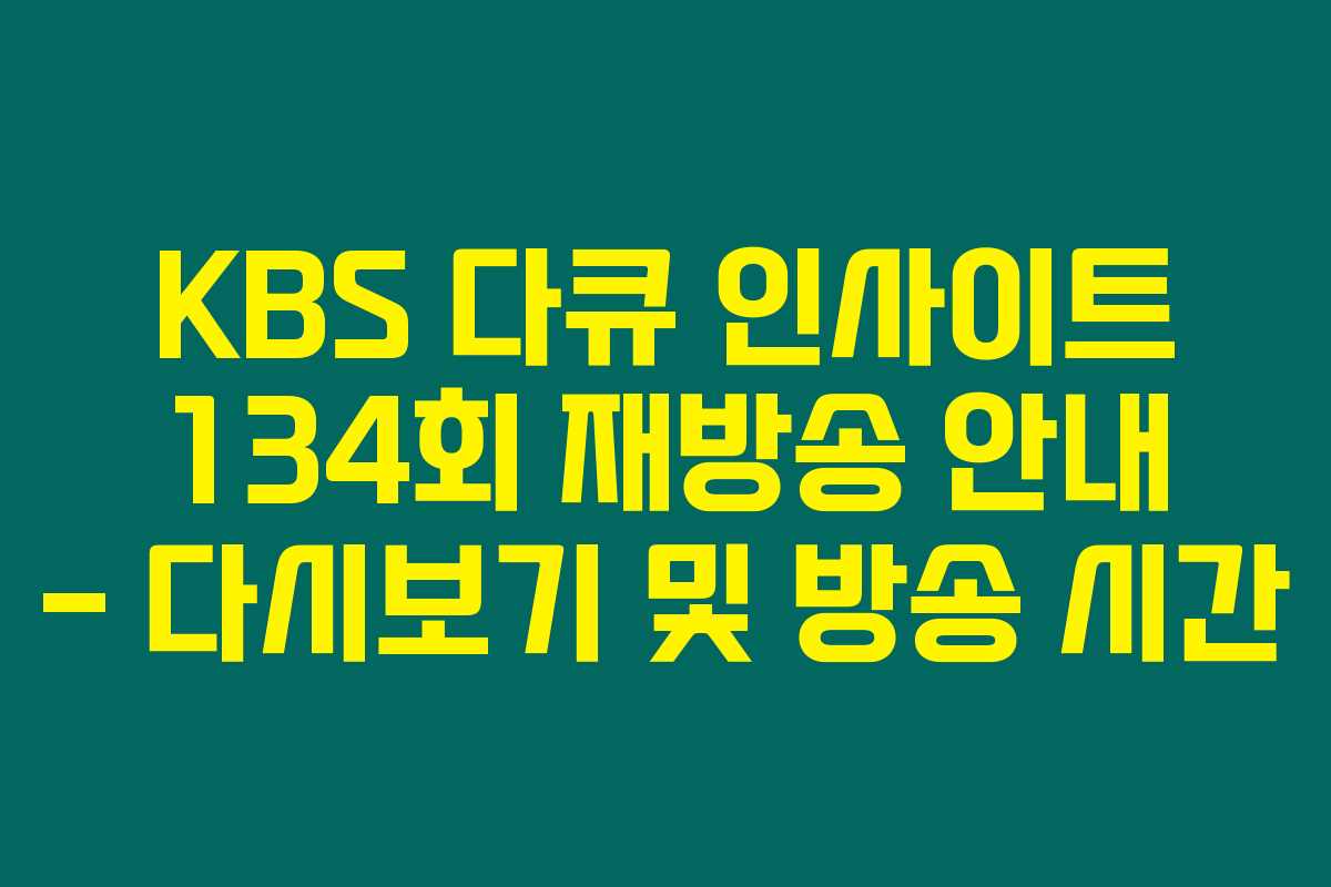 KBS의 인기 다큐 프로그램, 인사이트의 134회가 재방송됩니다! 어떤 내용이 담길지 궁금하지 않으세요? 아래를 읽어보시면 시청률, 방송 시간, 다시보기 방법 등 필요한 정보가 가득합니다. 놓치지 마세요!