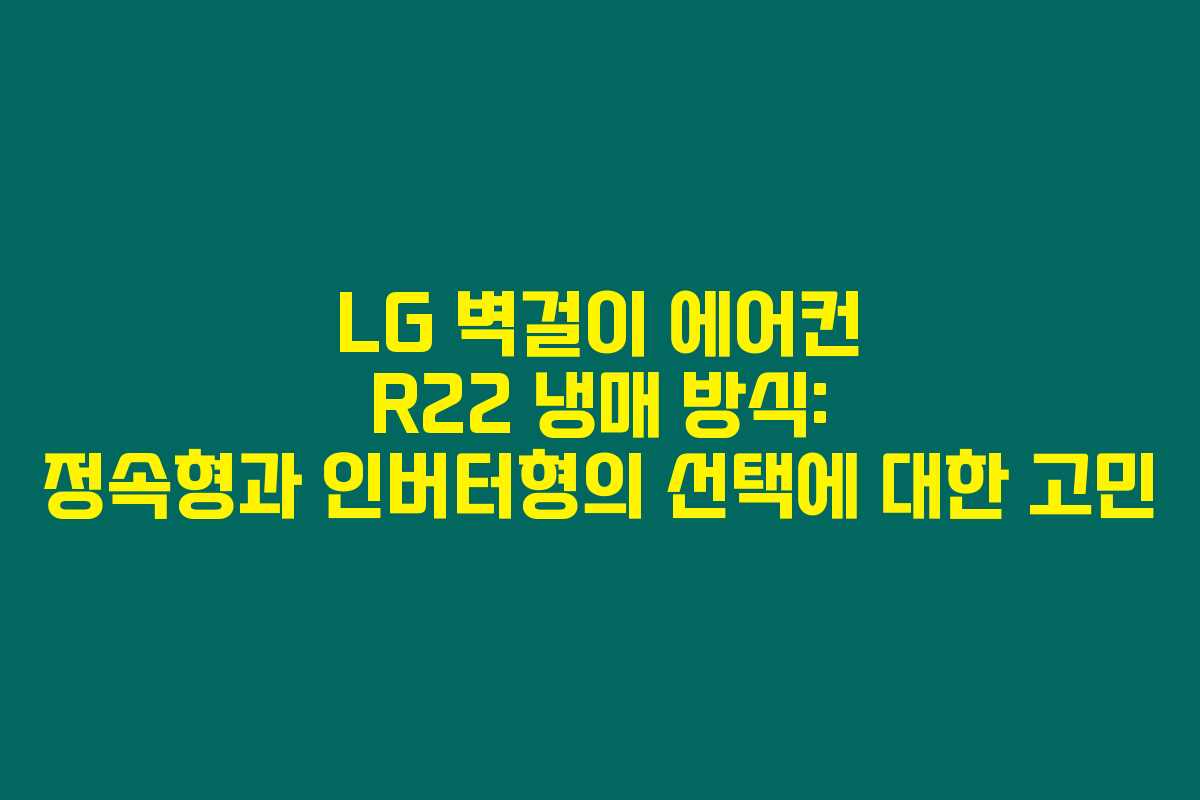 많은 가정에서 사용되고 있는 LG 벽걸이 에어컨, 특히 R22 냉매를 사용하는 모델은 오랜 역사와 안정성을 자랑합니다. 그러나 이런 모델이 정속형인지 인버터형인지에 대한 의문은 여전히 사용자들에게 남아 있습니다. 아래를 읽어보시면 이 두 가지 유형의 에어컨 차이점과 R22 냉매의 특징을 통해 올바른 선택을 돕는 정보를 찾아보실 수 있을 겁니다.