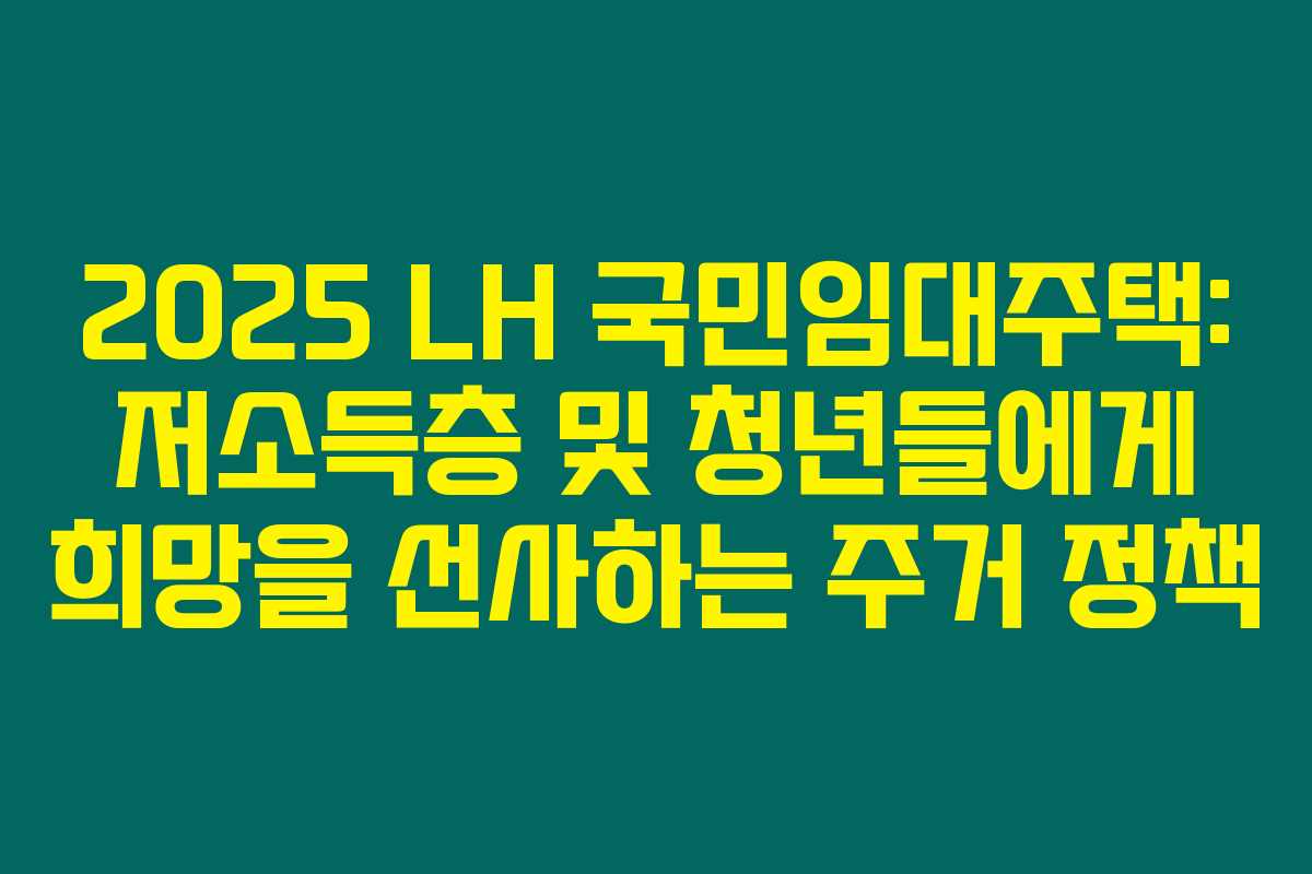 이번 2025년 LH 청약 정책은 경제적인 어려움을 겪고 있는 무주택자와 취약 계층에게 도움이 되는 여러 방안이에요. 국민임대주택, 행복주택, 청년전세임대주택 중에서 본인의 상황에 맞는 유형을 선택해 보세요.