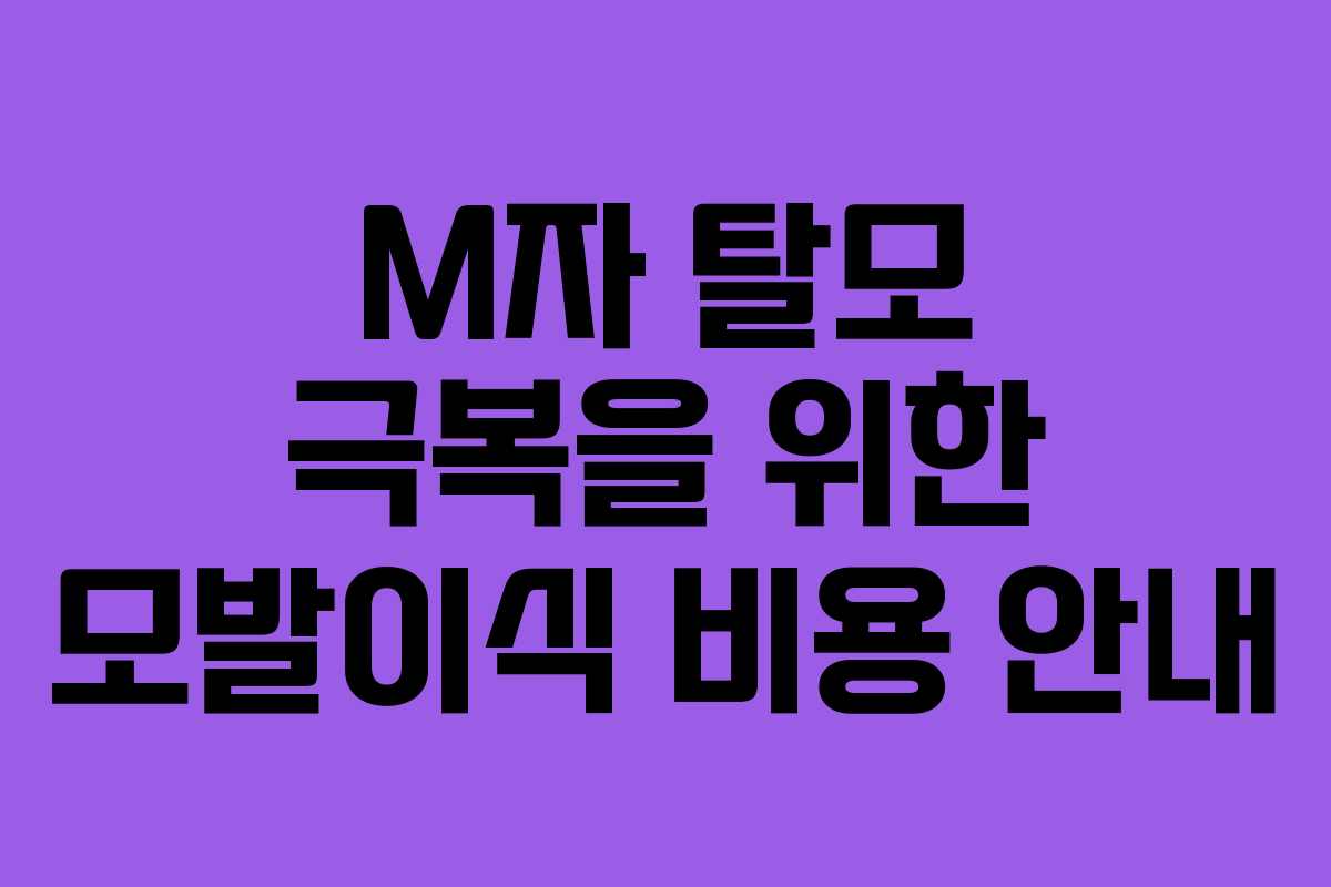 M자 탈모로 고민하고 계신 분들에게 모발이식은 효과적인 해결책이 될 수 있습니다. 이번 글에서는 모발이식 비용과 이를 통해 경제적으로 만족할 수 있는 방법을 소개하겠습니다.