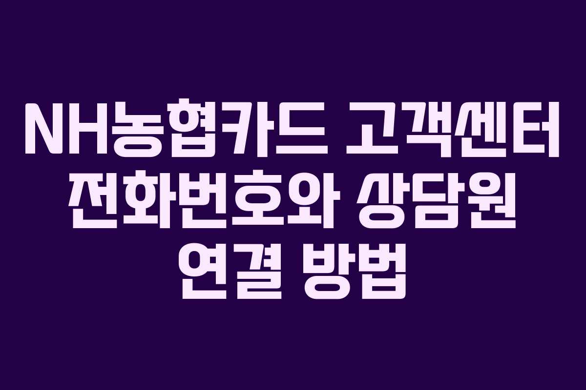NH농협카드 고객센터의 전화번호와 상담원 연결 방법을 알아보았습니다. 카드 관련 문제나 문의가 있을 때 이 정보를 참고하여 신속하게 문제를 해결하시기 바랍니다.