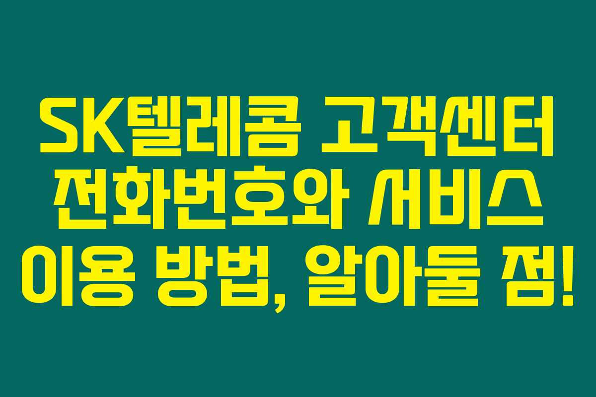 제가 알아본 바로는, SK텔레콤 고객센터는 고객의 다양한 요청과 문제를 효과적으로 처리하기 위해 항상 준비되어 있는 전문적인 서비스입니다. 전화번호를 통해 자세한 상담을 받거나, 온라인 서비스를 이용해 문제를 신속하게 해결할 수 있는 방법들이 많습니다. 아래를 읽어보시면 SK텔레콤 고객센터의 전화번호 및 활용 방법에 대해 더 많은 정보를 얻을 수 있을 거예요.